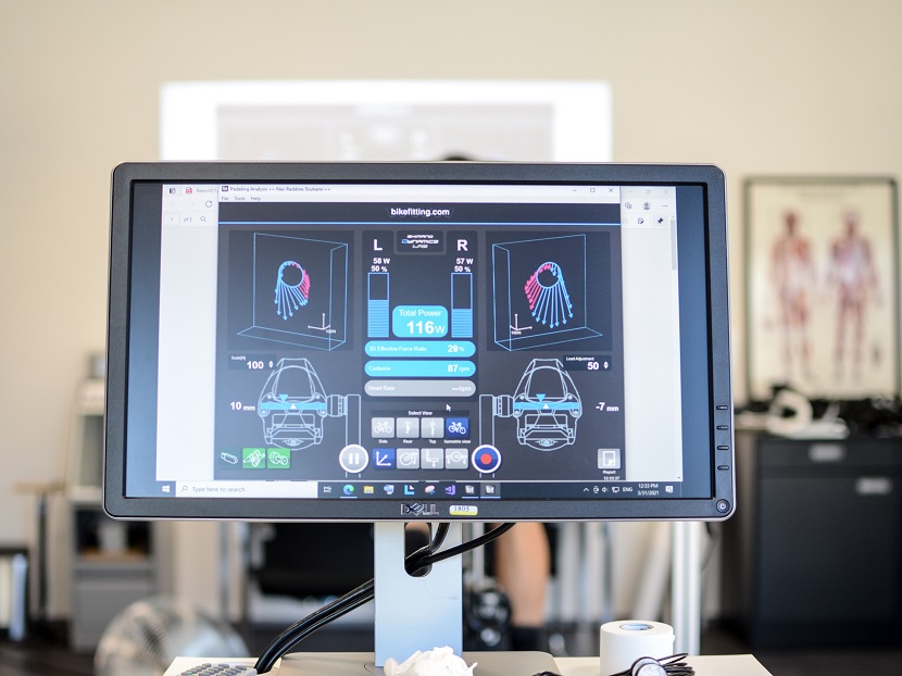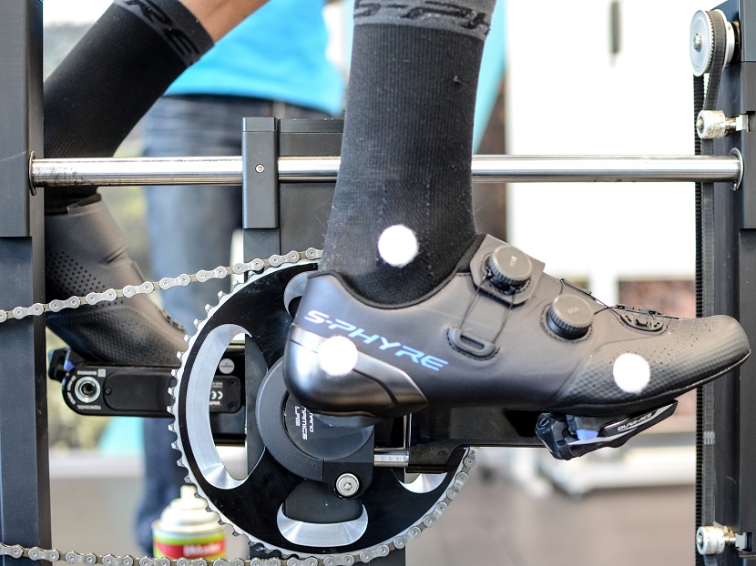 Grappig genoeg heb je tot dan toe nog geen fiets aangeraakt. Dat komt pas in de volgende fase waarbij je op een flexibel instelbaar fietssysteem stapt. Tijdens een Dynamic Fit wordt je fietshouding geanalyseerd met hulp van een speciale 3D camera die een stickman-versie van jou op het scherm projecteert. Tijdens Dynamic Pedaling Analysis wordt jae pedaalslag geanalyseerd met een unieke powercrankset waarbij de kracht in drie dimensies wordt gemeten.