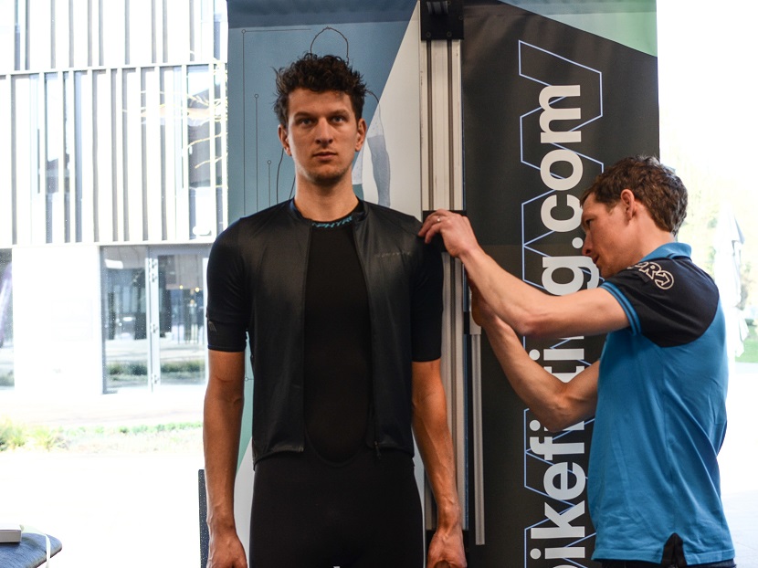De volgende stap is een uitgebreide lichaamsmeting met de 2D Body Analyzer. Dit apparaat meet je lichaam op acht verschillende punten. Op die maten wordt het algoritme van Bikefitting.com losgelaten waarin 1,5 miljoen metingen zijn verwerkt. Uitkomst is een volledig fietsdiagram dat is afgepast op je lichaam.