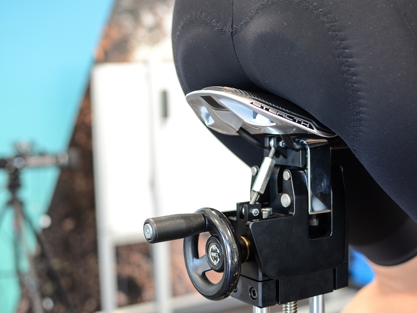 De laatste stap van de bikefitting is het overnemen van de definitieve afstelling op je eigen fiets. Dat gebeurt letterlijk met de precisie van een lazer. Met hulp van de Bike Adjuster wordt de nieuwe houding op de millimeter nauwkeurig afgesteld. “Zo weten we zeker dat je écht met de juiste fietsafstelling naar huis gaat.”