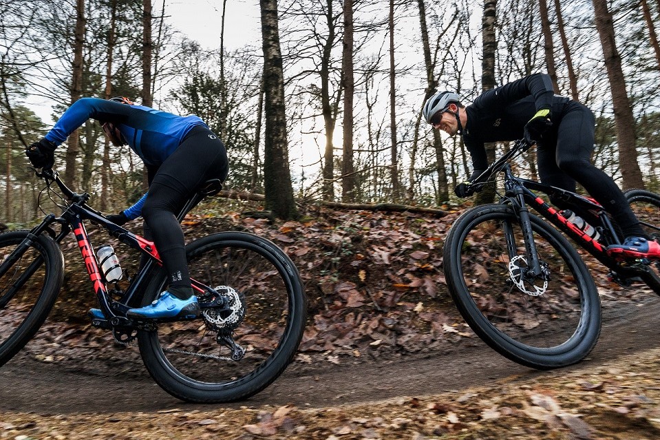 Die bredere banden hebben te maken met een nieuw inzicht. Brede banden hebben meer grip en, tegen de verwachting in, niet meer rolweerstand op mountainbiketerrein. Je kunt ze met lagere druk rijden, waardoor je soepeler kleine oneffenheden neutraliseert die je anders zouden afremmen.