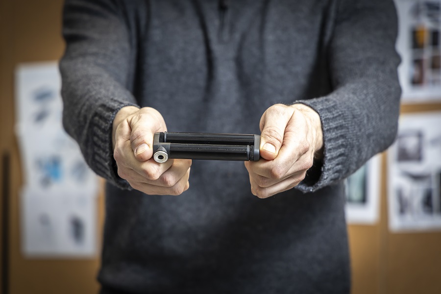 De ontwerper laat en passant ook een flexibele en draaibare telefoonhouder zien, en een innovatieve standaard voor fietsonderhoud. “Beide zijn nog in de ontwikkelingsfase. De kans dat we ze in productie nemen is, na nog wat aanpassingen aan het ontwerp, zeker aanwezig. We nemen pakweg 90 procent van onze ontwerpen uiteindelijk in productie, hebben inmiddels prima door waar we de consument mee van dienst zijn.” Trots toont hij ook een mini-pomp, waarvoor BBB Cycling bedacht dat een verdubbeling van het aantal luchtkamers van twee naar vier het pompgemak aanzienlijk zou verbeteren. “Een slim ontwerp. Niet voor niets hebben we er vorig jaar twee prestigieuze prijzen voor gekregen.”