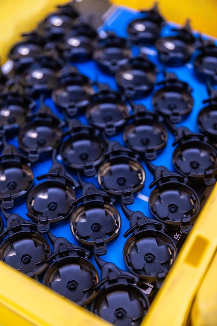 “Maar de aantallen werden al snel zo groot, dat was geen doen meer. Toen bleek dat we het werk bij een sociale werkplaatsvoorziening konden onderbrengen. Ook met promotieacties, met flyertjes maken, helpen deze mensen me. Dit hier (Mathijs grist wat onderdeeltjes van tafel, red.) is een product voor de Cervélo S5, het speciale Visma | Lease a Bike-model, herkenbaar aan de gele kleur die we speciaal voor deze wielerploegploeg zo hebben gemaakt.
