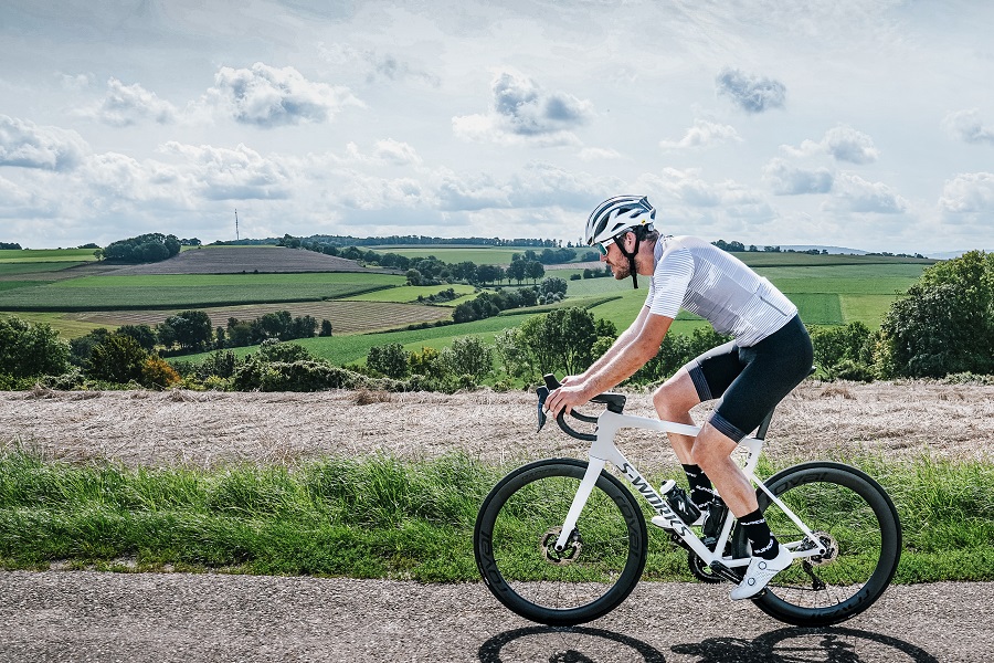Een goede-benen-dag of een zuchtje wind in de rug hebben waarschijnlijk meer effect op de gemiddelde snelheid dan de ‘marginal gains’ (al klinkt 15% heel veel) van het nieuwe model. Hoe de fiets versnelt, aanvoelt in bochten en (stabiel) afdaalt is nog veel belangrijker. Daarom nam ik afgelopen zomer de proef op de som. Op uitnodiging van Specialized voelde ik de S-Works Tarmac SL8 aan de tand in de Limburgse Heuvels.