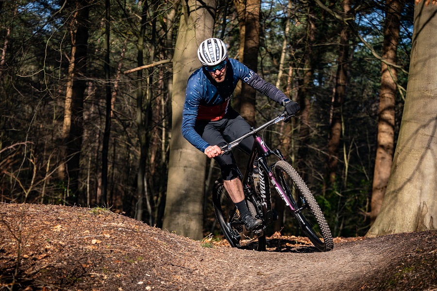 Genoeg gekletst over grammen en zelfdenkende dempers. Tijd om de nieuwe S-Works Epic 8 eens flink op z’n donder te geven. MTB-route Schaarsbergen is hiervoor ideaal. Het ruim 22 km lange rondje ligt op een steenworp afstand van het Specialized kantoor en slingert als een ontspoorde achtbaan door het bos. Ideaal om uit te vinden wat dit crosscountry kanon in zijn mars heeft.