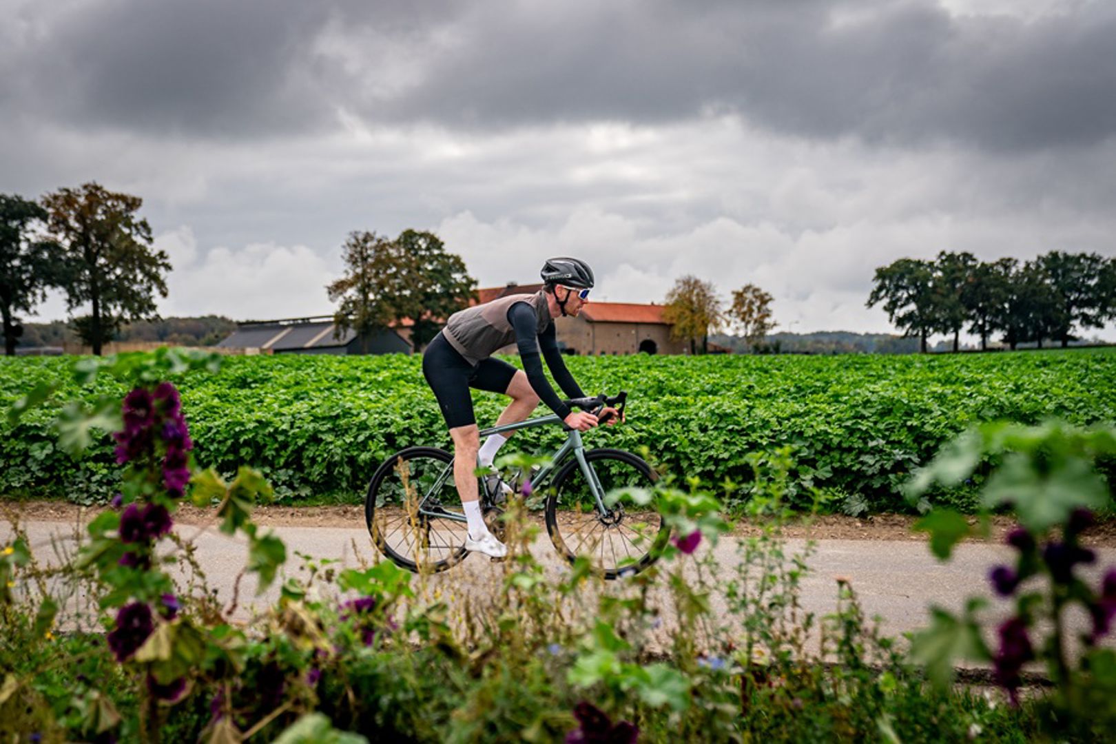 Al vanaf de Loorberg gaat deze route gestaag richting het noordwesten. Ik blijf bij de groep, bij de belofte deze fiets weer in te leveren én bij de beloofde gezinsplanning voor dit weekend. Ondanks het sterke gevoel dat de Aethos verleidelijk geeft om een zuidelijke verplaatsing te maken. Want hoe lekker zal het zijn om met dit veertje een Alpenreus op de waaien?