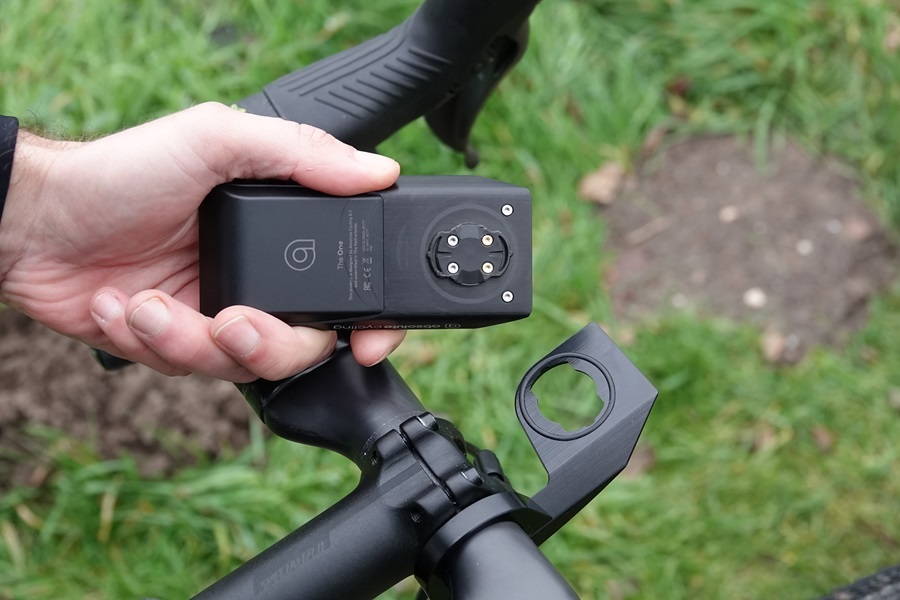 En dat is maar goed ook, want opladen is een dingetje. The One heeft namelijk geen poort waar je een oplaadkabel insteekt. Je laadt het apparaat op via het bevestigingspunt aan de achterzijde. Die draai je – net als in de mount op het stuur – in een mooie maar onhandige oplader. Opladen via een powerbank op het stuur is daardoor op zijn zachtst gezegd een behoorlijke uitdaging. De lader laat zich door zijn vorm ook niet makkelijk vervoeren in een krappe stuur- of frametas. Dat is voor de meeste coureurs geen probleem, maar voor een doorgewinterde bikepackers een aandachtspuntje om rekening mee te houden.