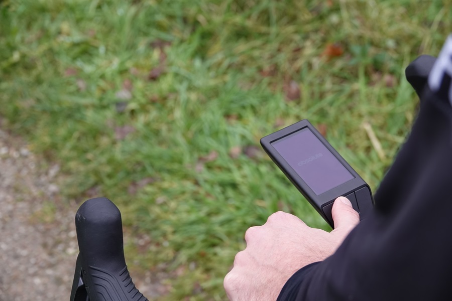 Door naar de bediening. Dat was even wennen. Want waar steeds meer merken overstappen op touch screens, kiest Absolute Cycling bewust voor een toestel met knoppen. Een budgetkeuze? Zeer zeker niet. De knappe koppen van het Arnhemse bedrijf bedachten dat je bij een druk op de knop meteen een duidelijke actie hebt. En een dikke plus in deze periode van het jaar: je hoeft je handschoenen niet uit te doen als je even je gemiddelde wilt checken. En ja, ik weet dat er handschoenen met vingertopjes bestaan waarmee je die schermpjes kunt bedienen. En nee, dat werkt bij mij zelden.
