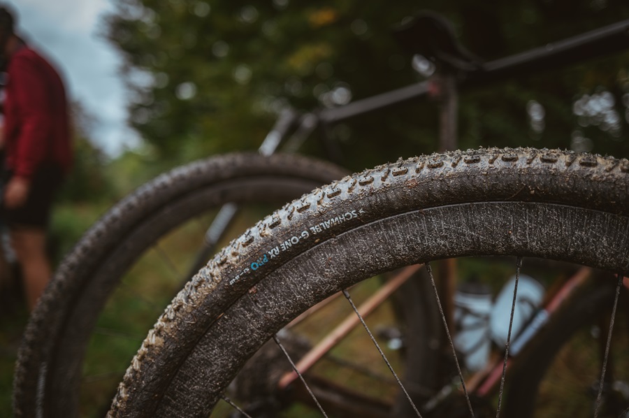 Een nieuwe band voor ruig en modderig dus. Je hoeft in de winterse weekenden maar naar een cycle-cross wedstrijd op het scherm te kijken om te zien dat er best te fietsen valt in blubber. De ervaring uit het veldrijden hebben de Duitsers naar de gravelwereld getrokken.