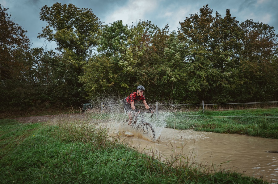 Genoeg theorie, tijd om deze nieuwe gravelbeesten te gaan voeren. Voeren met modder, bakken vol met modder. De herfst heeft lekker meegewerkt aan deze test en dus staat ieder onverhard stukje van de route vettig. Wanneer het RX onderstel een fors eerste salvo aan blubber heeft verwerkt, kijk ik nieuwsgierig naar beneden. Het is echt waar, de zelfreiniging doet wat het belooft!