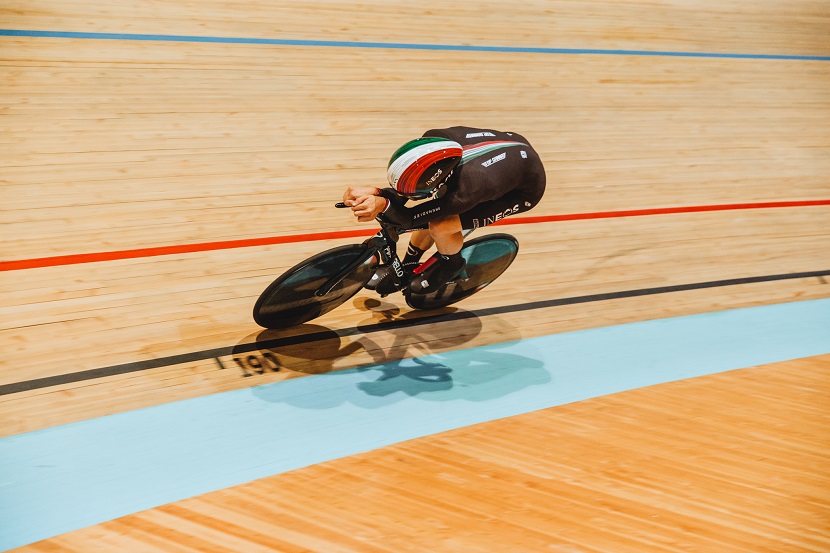 Ganna's pak is tot in de puntjes afgestemd op het lichaam van de Italiaan in racepositie. Zo ondersteunt de pasvorm van het pak zijn ideale aeropositie op de fiets en helpt het hem ook die positie te behouden gedurende de hele poging.