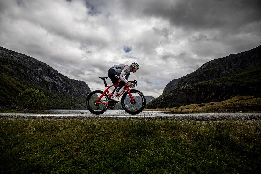 Welk aandeel zijn flitsende fiets in deze overwinningen precies heeft gehad weten we niet. Wel dat de gestroomlijnde racebak met opvallend gevormde zitbuis – door Trek IsoFLow gedoopt – er zelfs stilstaand uitziet alsof-ie door de geluidsbarrière kan knallen.