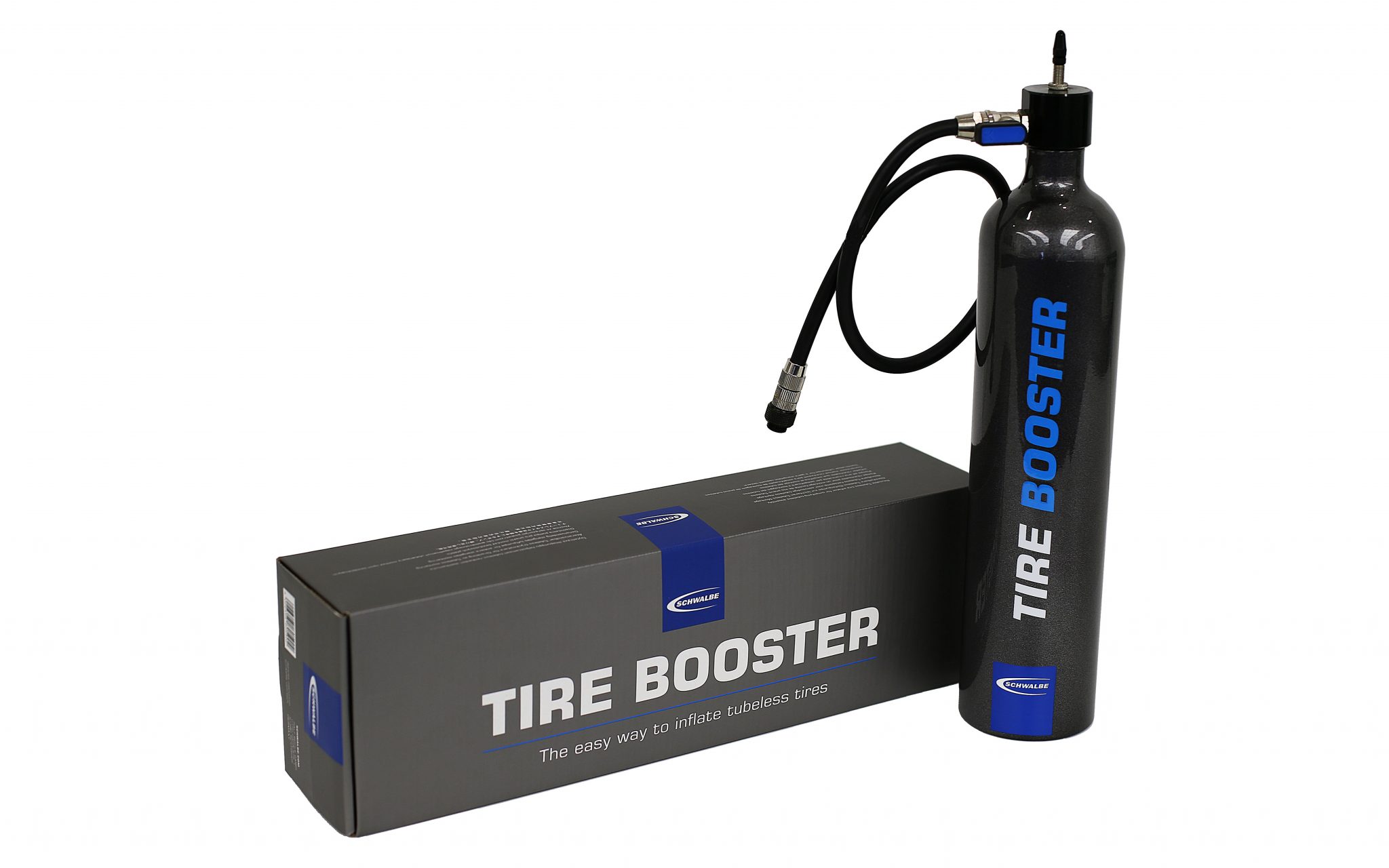 Stap 4 Sommige tubeless banden laten zich met een gewone vloerpomp oppompen. Het is bijna altijd handiger (en sneller) om hiervoor een van de bovengenoemde drukpompen te gebruiken: hiermee blaas je in een klap 8 tot 10 bar in je band. Schrik hierbij niet als je een paar flinke knallen hoort: dat is de hiel van je band die zich in de velg vastzet. Heb je geen speciale pomp? Bij je lokale bikeshop hebben ze vast een compressor die je even mag gebruiken.