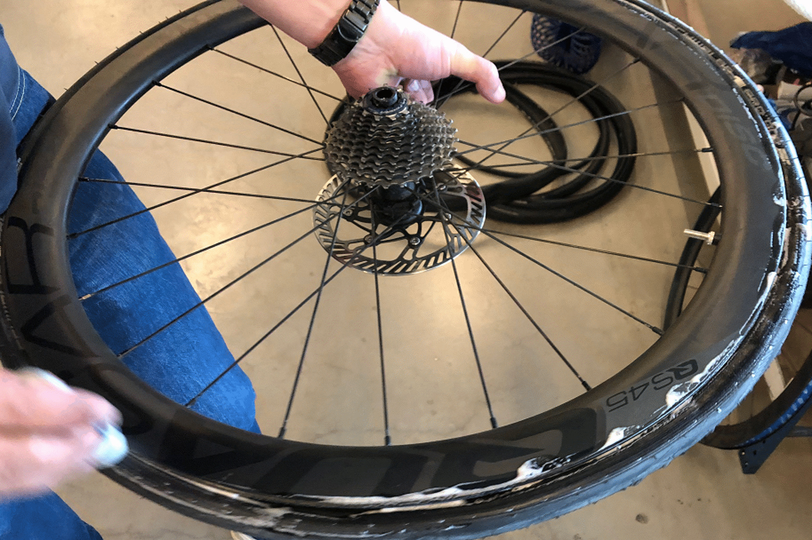 Tubeless rijden betekent fietsen zonder binnenband. Hier heb je een paar dingen voor nodig: een tubeless-ready band, een tubeless-ready velg, tubeless velglint in het wiel en een tubeless-ventiel, want zonder binnenband zit er geen ventiel door het gat. De buitenband ‘plopt’ in de tubeless-ready velg en doordat het specifieke velglint en het specifieke ventiel de binnenkant afsluiten, wordt er zo een luchtdichte seal gemaakt.