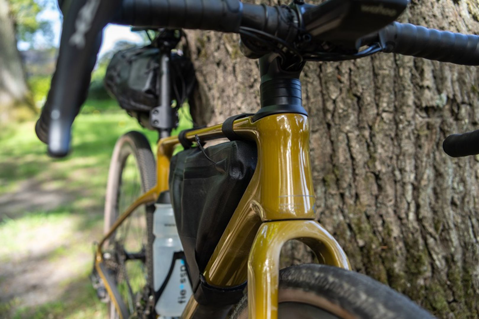 Fietssporter Mats ging tijdens de trip op pad met de zadeltas Acid Saddle Bag Pack Pro 11. Onder zijn frame hing de Acid Frame Bag Pack Pro 3.