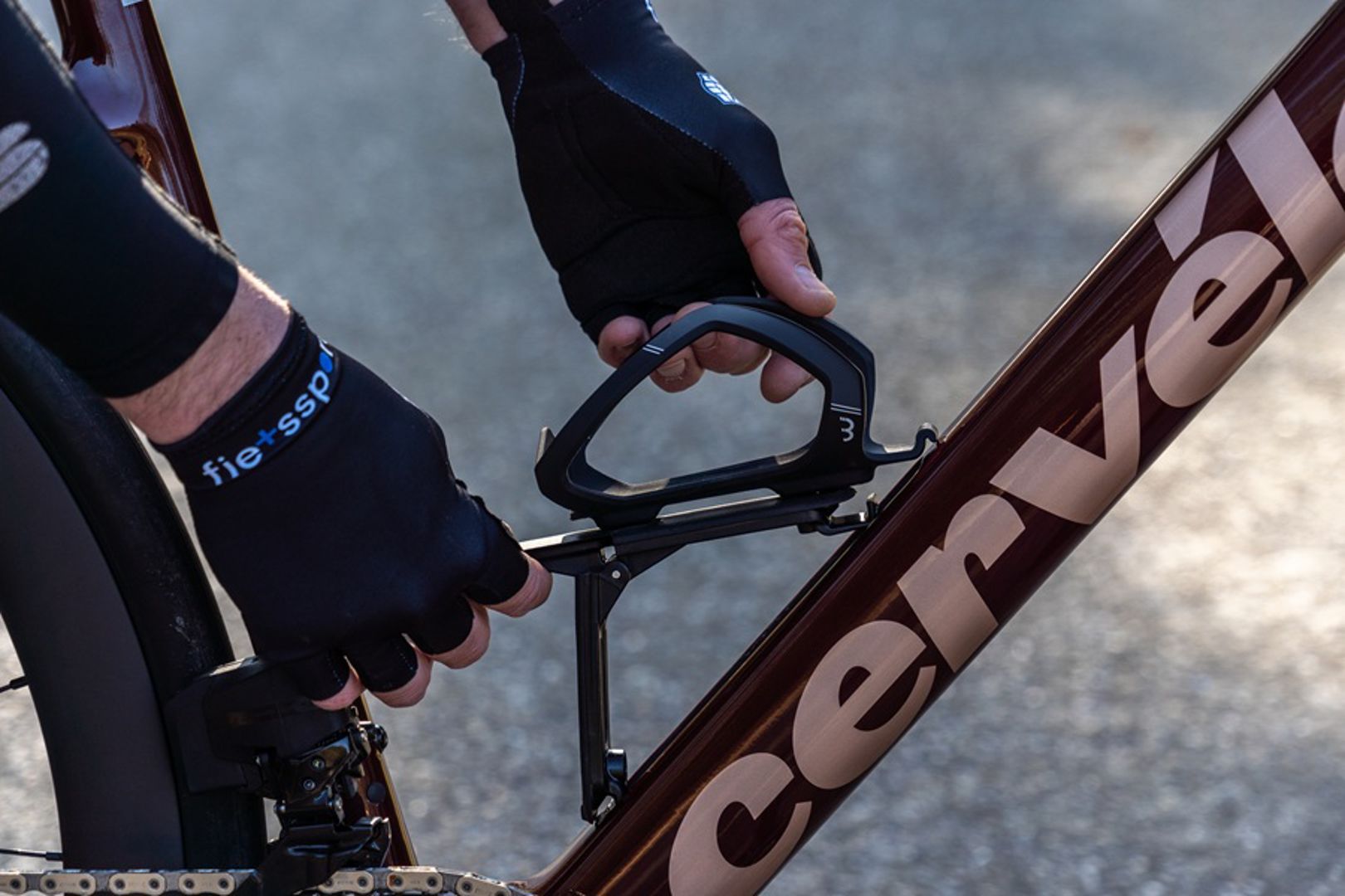 Een opvallende toevoeging is het geïntegreerde opbergvak in de onderbuis van het frame. Maak met het haakje het deksel los waar de bidonhouder op geschroefd zit en aanschouw de ruimte! Dit compartiment biedt, met twee daarvoor gemaakte langwerpige zakjes die je met makkelijke lusjes uit het frame kunt vissen, ruimte voor een multitool, binnenband en CO2-patroon. Een paar reepjes of gelletjes krijg je er ook nog in gepropt. Dus is de tocht lang en zwaar en wil je toch die mooie strakke look van je fiets behouden? Gebruik ‘de geheime kamer’.
