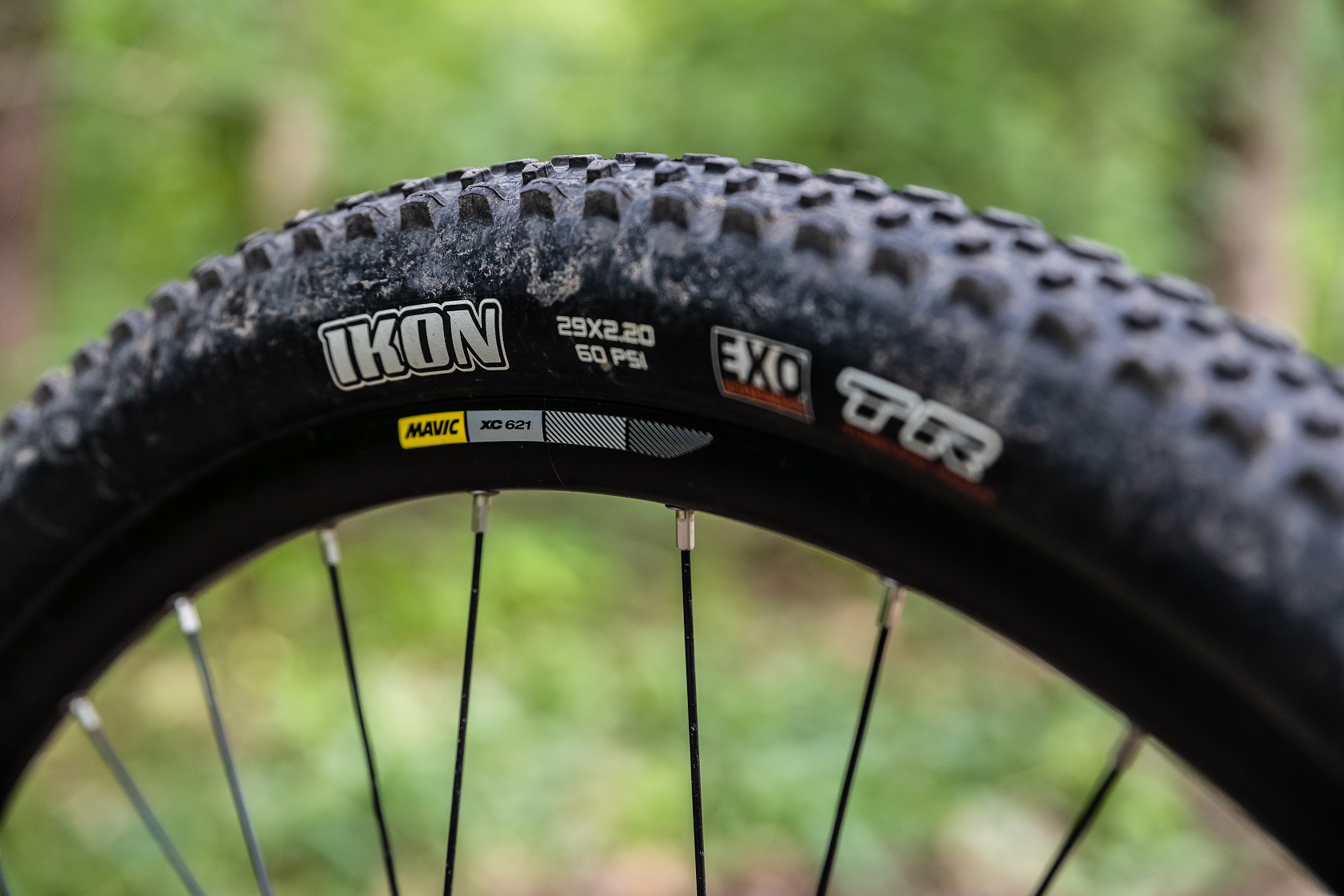 Ook op de banden is niet bezuinigd. Om het voorwiel ligt een 2,25 inch brede Maxxis Ardent, de achterband is een Maxxis Ikon met een breedte van 2,2 inch. De Ardent combineert een lage rolweerstand met grip en bereikt niet snel zijn limiet op de Nederlandse bospaden.