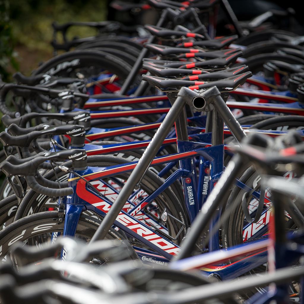 Allereerst ga ik op pad met de Bahrein Merida Team uitvoering met DuraAce Di2, de kortgeleden geïntroduceerde Fulcrum Speed 55c wielen en een fraai geïntegreerde Vision stuurcombinatie met vleugelprofiel. Ik word geraakt door een uitzonderlijk lichtvoetige wendbaarheid en acceleratie. En een gevoel naar voren gezogen te worden. Dat laatste kan natuurlijk niet, maar wijst op minder fietsweerstand dan wat al decennia in mijn hersenschors zit geprogrammeerd. Het volgende dat opvalt is het goede comfort. Het stereotype van de stuiterende aerofiets wordt niet bevestigd. Alles klopt voor mij resulterend in een magische aantrekkingskracht van deze racer. Nou ja, bijna alles. Bij krachtig aanzetten, loopt de onder de bracket gemonteerde achterrem aan, dus deze moet ruimer worden afgesteld. Een gangbaar euvel bij remmontage op deze positie. Het zegt weinig over de bracketstijfheid, want die voelt goed aan. Verder kan ik de Di2-bediening met dicht bij elkaar liggende toetsen voor op- en afschakelen mijn vriend niet noemen. In het heetst van de strijd is dat geen probleem, omdat je dan de trefzekere sprintshifters gebruikt, die ook tot het wapenarsenaal behoren.