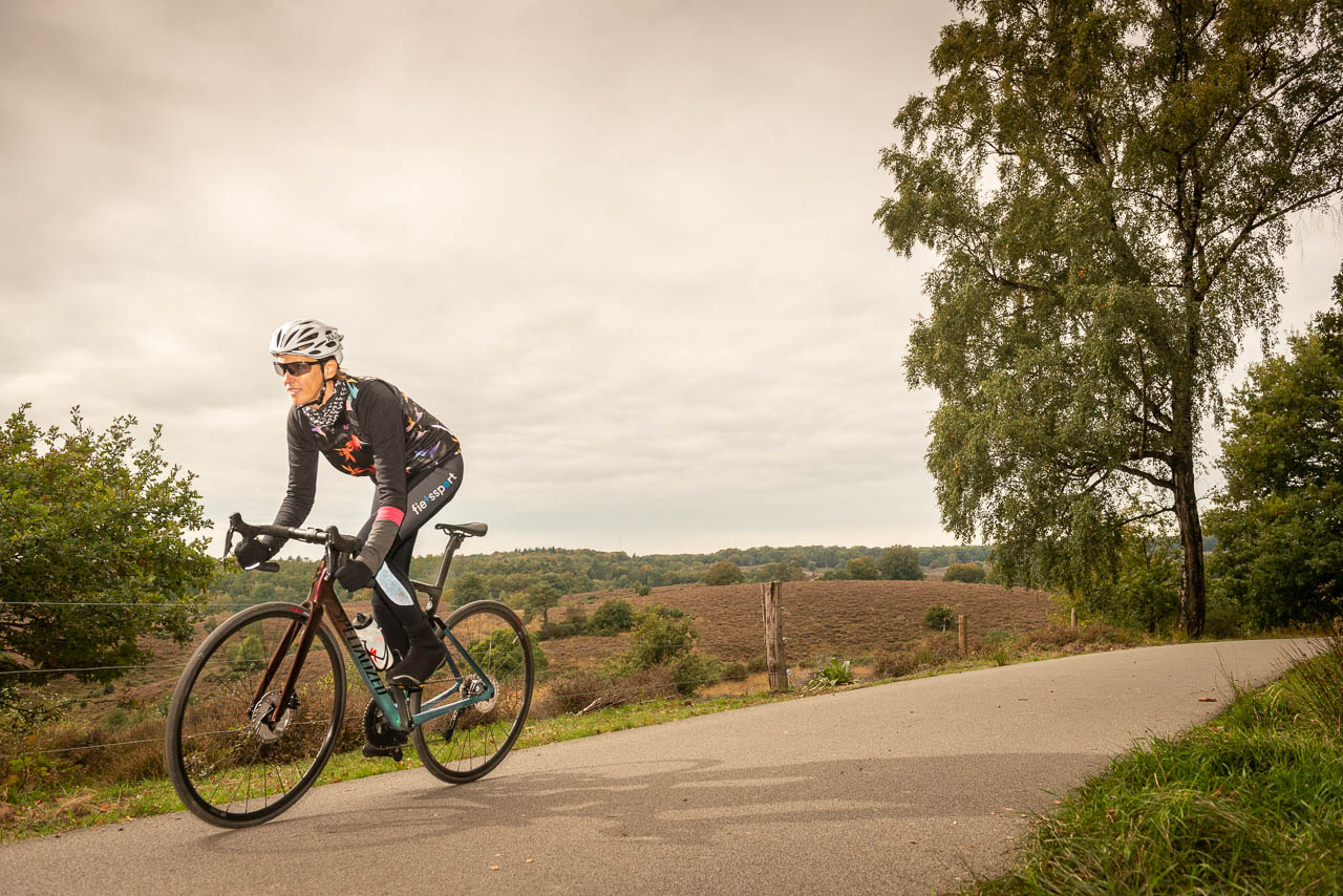 Dan de rijervaring. Daar kan ik kort over zijn, want die is subliem. Van klimmetjes op de Posbank, tot klinkerwegen, gravel en snelle asfaltfpaden in de Achterhoek. Heb ik met mijn eigen aluminium frame op klinkerwegen het gevoel dat ik op Belgische kasseien rij, het carbon frame zorgt met de 26 mm banden duidelijk voor meer comfort. Oneffenheden op de weg worden duidelijk meer gladgestreken. De schijfremmen doen zijn werk uitermate efficient.