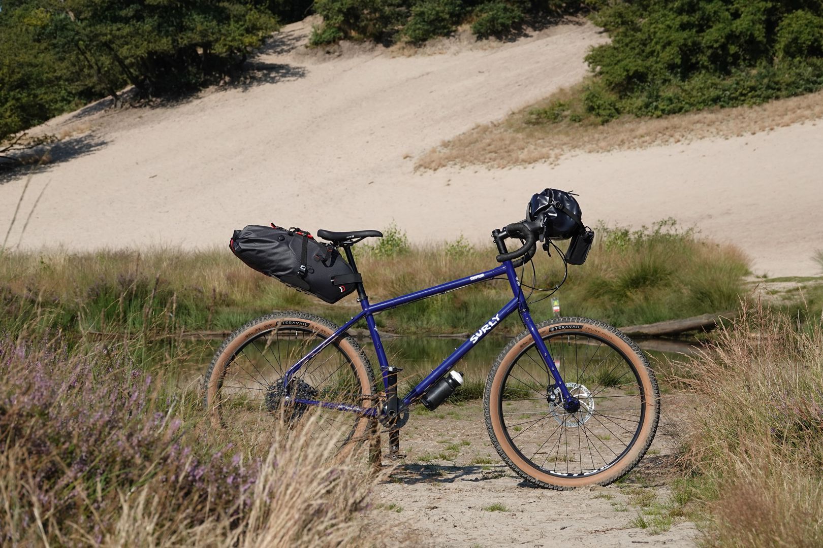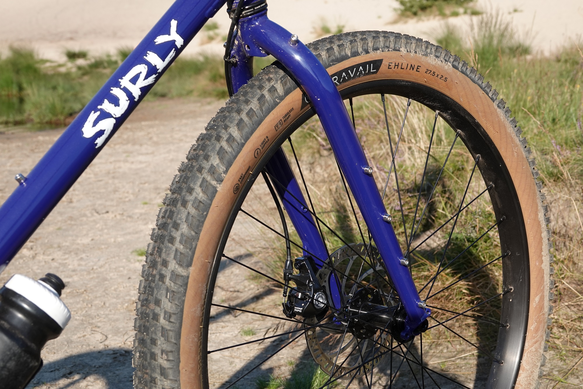 Op het oog zijn er veel overeenkomsten met de Fargo: een breed krom stuur, dikke bandjes, overal nokjes voor bikepacking en een vaste vork. Maar als je iets beter kijkt, zie je wel degelijk verschillen. Verschillen die verklaren waarom Surly het nodig vond om een dropbar mountainbike te ontwikkelen.