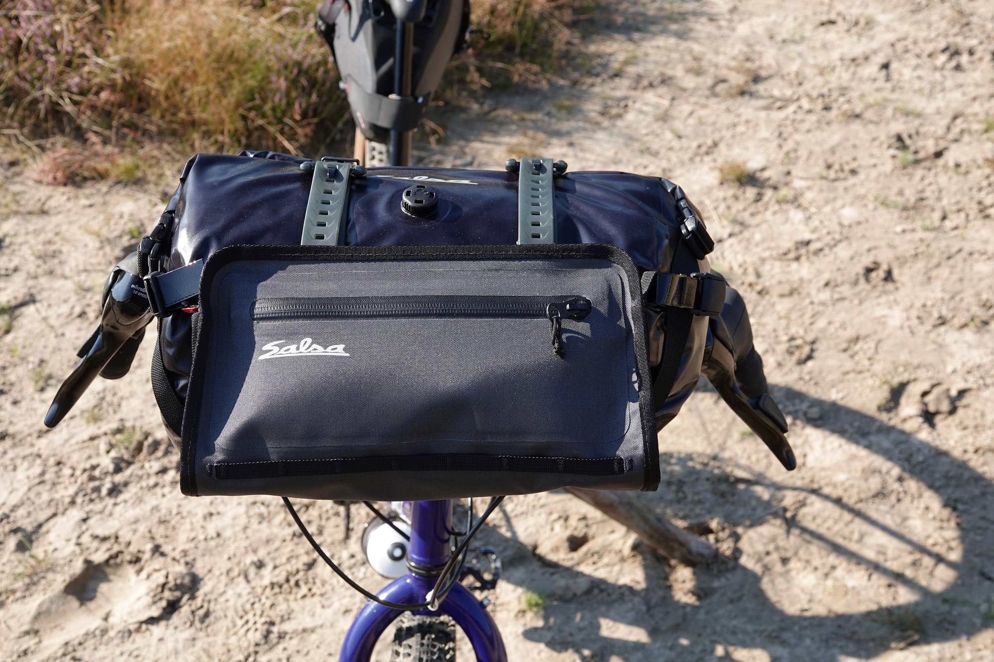 Waar ik meer moeite mee heb zijn de handgrepen. In tegenstelling tot veel andere merken laat microSHIFT de kabels aan de binnenzijde van de grepen naar buiten lopen. Niet handig als je daar net een stuurtas wilt hangen, omdat die je kabels continue in een rare knik duwt. Daardoor kan een rem opeens aangrijpen, je derailleur naar een andere versnelling schakelen of – zoals in mijn geval – het zadel ineens een stuk zakken. De Grappler is namelijk standaard uitgerust met een dropper post.