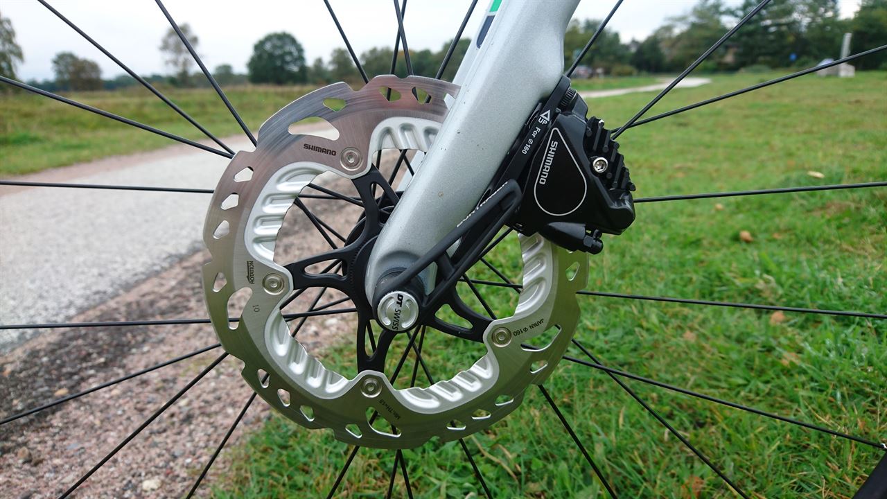 Samen met de extra massa van de brede banden en de schijfremset telt het op tot een lome 9,89 kg voor maat 54. Je voelt dat je daardoor minder makkelijk op gang komt. Voor comfortabel toeren is dat geen beletsel. En dat is precies waar deze racer in uitblinkt.