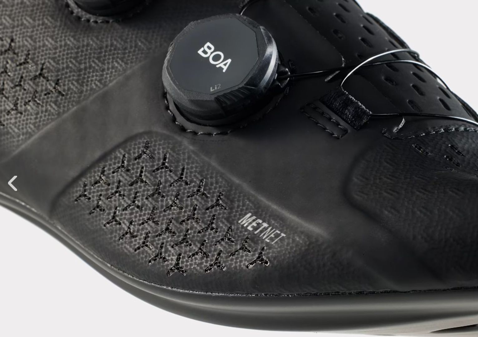 Profs zoals Lidl-Trek rijders Mads Pedersen en Lizzie Deignan lopen er spreekwoordelijk mee weg. Maar wat vindt de gewone toertochtfietser? Ik trok een paar schoenen aan, op zoek naar het antwoord op die vraag. Bij het aantrekken van de ‘muiltjes’ valt alvast één ding positief op: dankzij het ontwerp van de schoen en de nieuwe BOA L6-sluiting kun je de lip van de schoen helemaal omhoog trekken en stap je er zo in. Met deze nieuwe plattere BOA’s draai je de schoenen nog soepeler vast dan bij eerdere versies van deze sluiting.