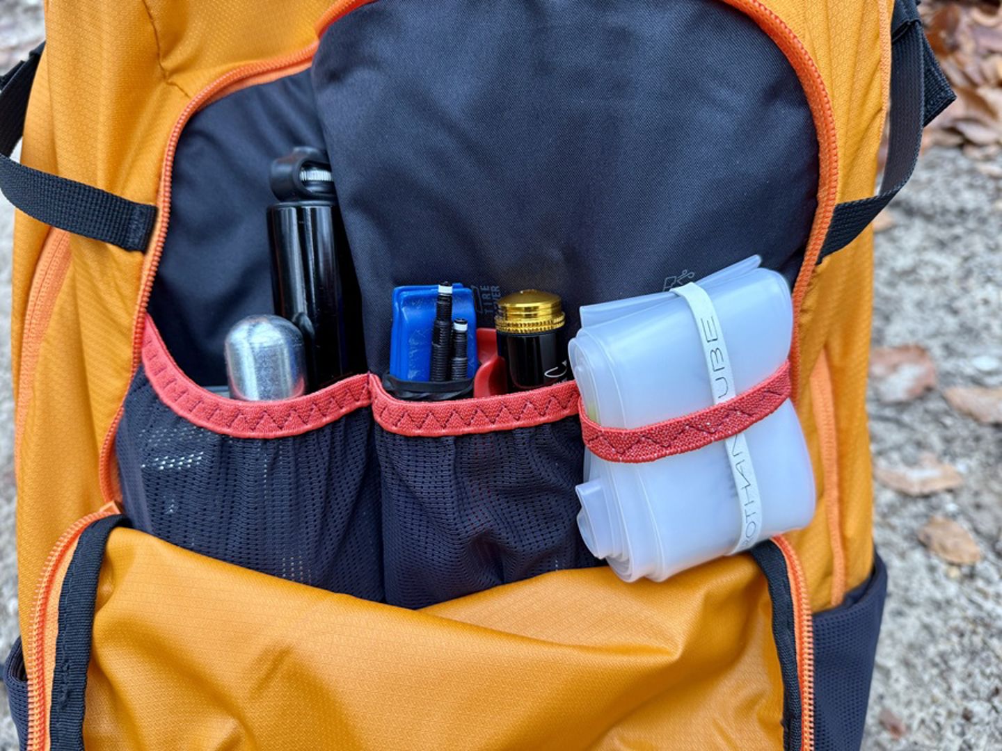 Ik neem tijdens het mountainbiken altijd meer mee dan ik nodig heb. Binnenbandjes, energierepen, pluggen, een minitool, extra paar handschoenen, een regenjasje: ik prop het allemaal krampachtig in de zakken van mijn fietsjack of -shirt.