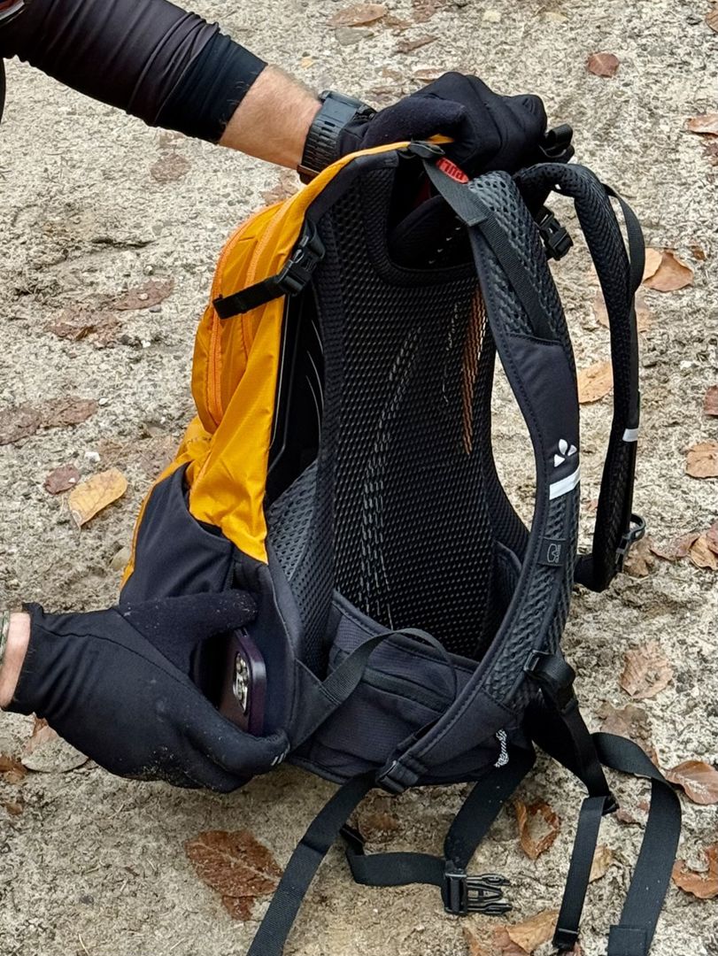 Genoeg over materialen en pasvorm. Tijd om te ontdekken hoe de Trailvent zich gedraagt in het veld. Wat me meteen opvalt, is de handige en doordachte vakkenindeling. In het ruime hoofdvak kan ik zonder moeite een extra jasje, eten en andere losse spullen kwijt. Ik gebruik ’m zelf niet, maar er is ook genoeg plek voor een drinkwaterzak.