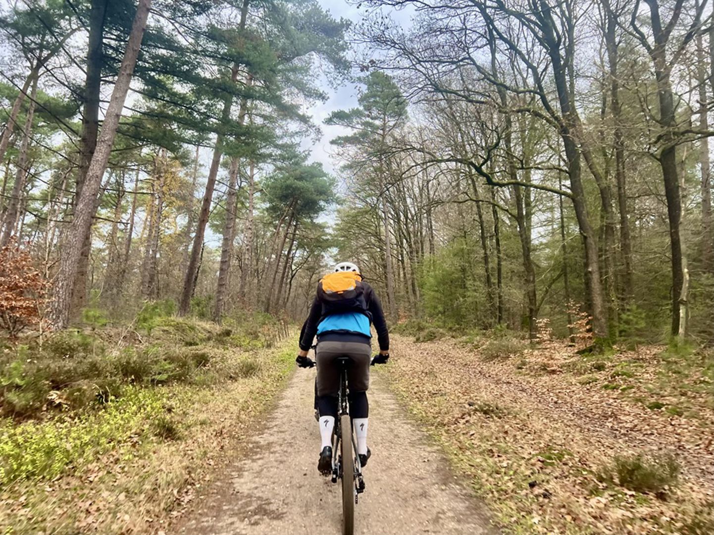 Ik heb de Trailvent onder andere getest op de mountainbikeroute van Amerongen. Die 18 kilometer lange lus (280 hm) slingert als een op hol geslagen achtbaan over de Utrechtse Heuvelrug. In tegenstelling tot veel andere UHR-routes zitten er nog behoorlijk wat stuiterstukken in. Ideaal terrein om te voelen hoe de rugzak zich houdt.