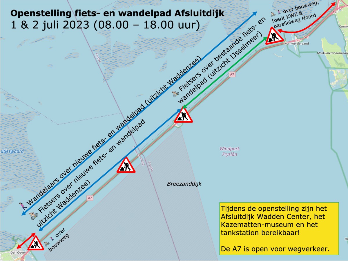 Is +300 kilometer iets te veel van het goede? Rijd dan een enkeltje (32 kilometer) of retourtje Afsluitdijk (64 kilometer). De fietsbussen blijven gewoon rijden. Kom je met de auto naar de Afsluitdijk? Parkeer op het terrein van bouwconsortium Levvel, Stontelaarweg 1 in Den Oever als je aan de Noord-Hollandse kant van de Afsluitdijk wil beginnen. Start je aan de Friese kant, dan kun je parkeren bij Hotel Restaurant Afsluitdijk Zurich. Te bereiken vanaf de A7 (afslag 15 Zurich).