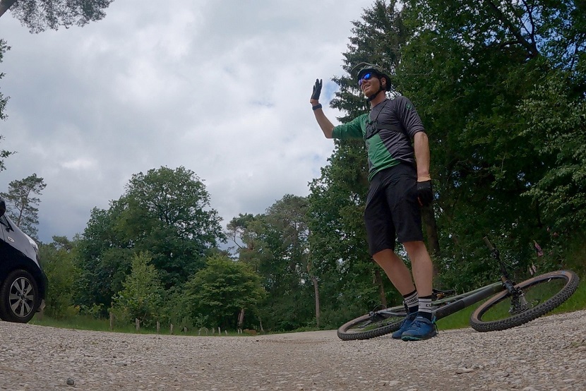 Mocht je gebruik maken van een chest mount, dan kan je af en toe ook de camera een kwartslag omhoog laten filmen. Je ziet dan jouw zwoegende gezicht door het bos ploeteren. Dit werkt vooral goed als je onder een mooie bomenrij heen rijdt.