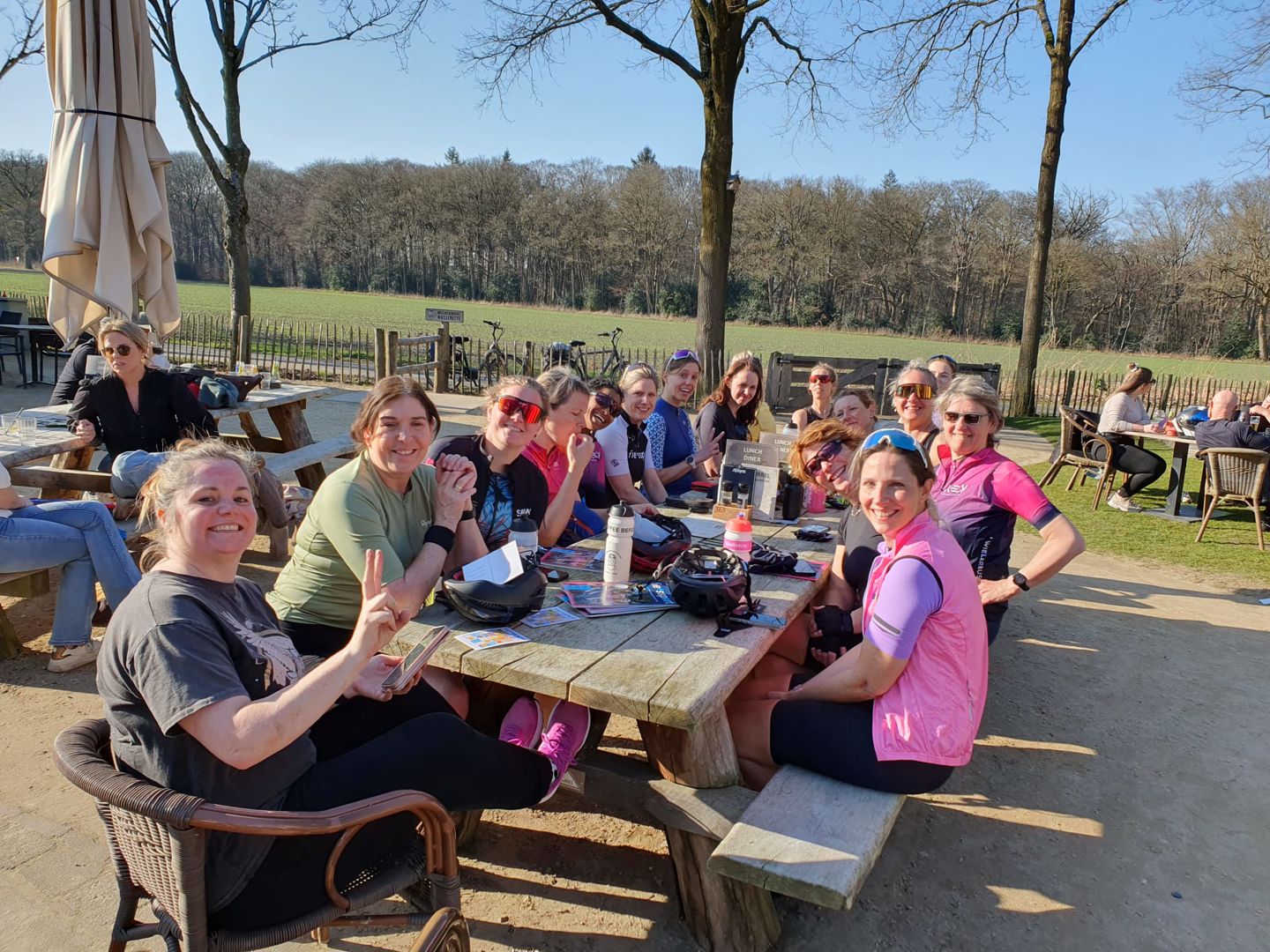 Terwijl de drankjes nog opgenomen moeten worden, worden er al nieuwe fietsplannen gemaakt. We proosten op het terras op de mooiste sport die er is: fietsen! En op deze Internationale Vrouwendag ook op onze kracht. De kracht van het enthousiasme van al deze vrouwen voor de fiets. Die met een positieve energie elkaar vinden in wat ze het liefste doen: fietsen.