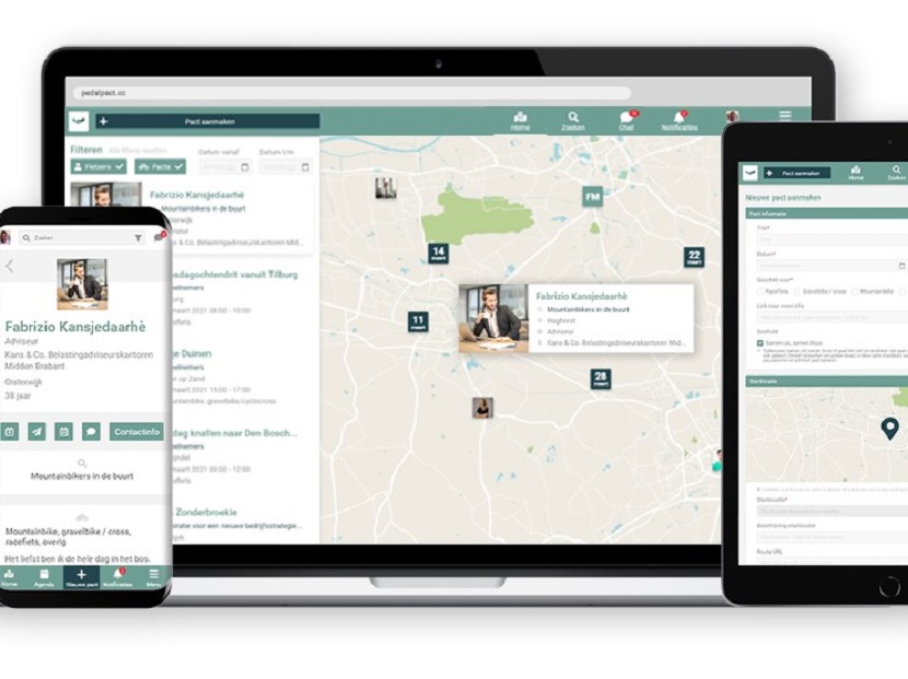 “Iedereen heeft het druk. Dus als je tijdens je fietskilometers ook je zakelijk netwerk kunt vergroten, sla je twee vliegen in één klap. En doordat je op pedalpact.cc van tevoren ziet wie meefietst, kun je precies aansluiten bij die ritten die jou interessant lijken”, zegt oprichter Daan Walet. “Zo wordt netwerken niet alleen leuker, maar pluk je er hopelijk ook meer vruchten van. En als je zakelijk uitgepraat bent, kun je altijd nog over carbon en staal praten.”
