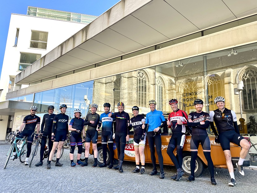 Niet veel later zat iedereen op de fiets en begon het feest: een korte verkenning van het parcours van de Ronde van Vlaanderen. Het was mooi om te zien hoe Museeuw als een echte wegkapitein het Fietssport-peloton in de gaten hield. Een duwtje in de rug hier, een praatje en een peptalk daar.