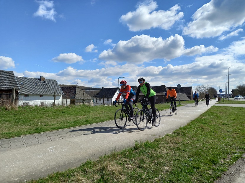 Na al dat moois, is het tijd om zelf meters te maken. Onze Fietssport-renners krijgen een lichtgewicht fiets aangemeten waarna een gemêleerd peloton onder begeleiding van een Shimano materiaalwagen het Zuid-Limburgse Heuvelland intrekt. Dansend en soms stampend op de pedalen werden hellingen als de Camerig, Eyserbosweg en Fromberg bedwongen. Iedereen op zijn of haar eigen tempo, maar bovenop altijd op elkaar wachtend.
