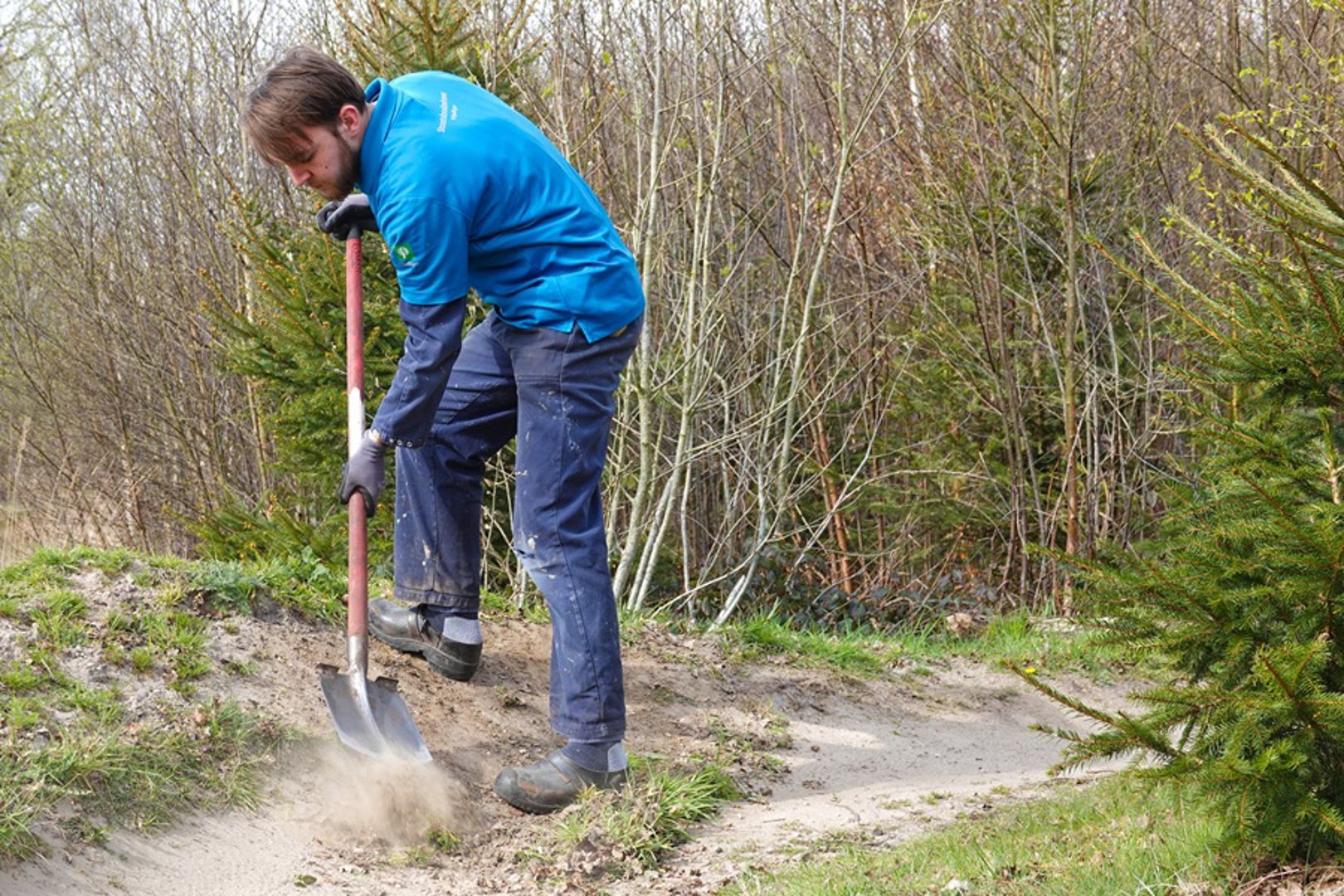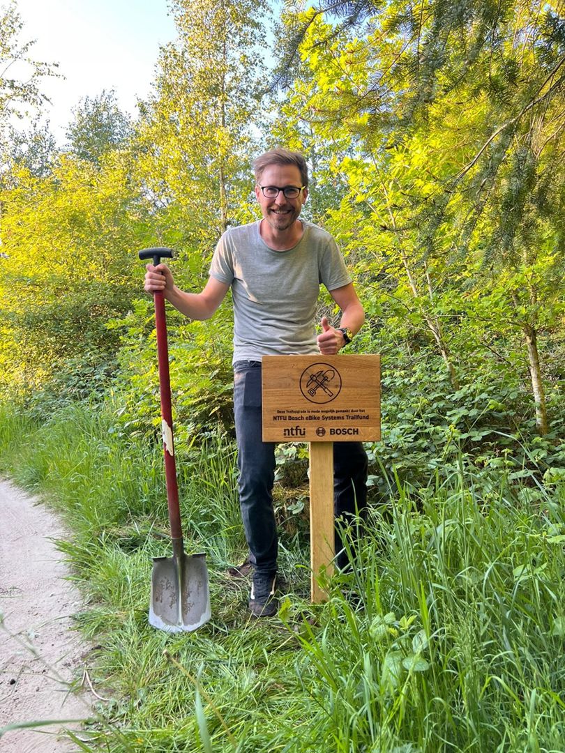 Met toestemming van Staatsbosbeheer hebben we uiteindelijk op een aantal plekken zand aangevoerd en loopvlakken hersteld. Een mooi voorbeeld is het ‘kuilenpad in het Strubben-Kniphorstbosch, dat met een flinke lading zand – mogelijk gemaakt door het NTFU Bosch eBike Systems Trailfund – werd veranderd in een heerlijk lopende flowtrail.