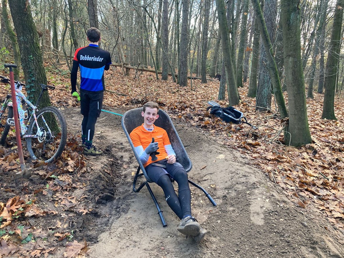 Verder hebben we met de jeugd van de club ‘scheptrainingen’ georganiseerd. In plaats van fietsen gingen ze met schep de route op. Door kinderen op deze manier te betrekken bij het werk van de trailcrew zien ze wat er voor nodig is om een route te onderhouden. Daarnaast is het voor hen natuurlijk ook een mooie kans om zelf bijvoorbeeld bochten te bouwen.