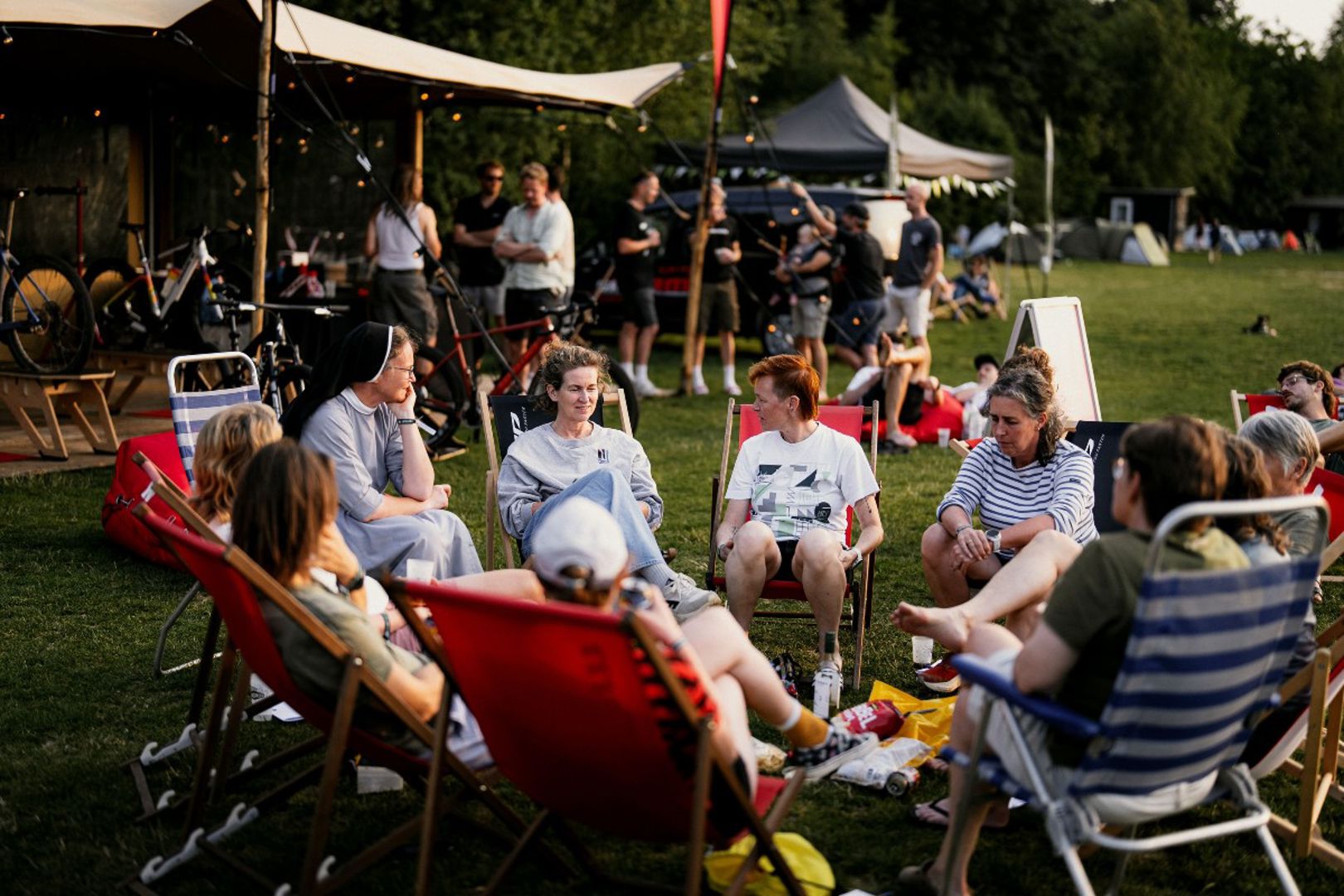 Nee, dat gaat hartstikke goed! Ik draag natuurlijk wel een bibshort eronder. Heel handig tijdens een bikepackingtrip, want een bibshort en habijt is het enige wat je nodig hebt. En of het wel het juiste merk is of als er een gaatje in zit: daar hoef ik me niet druk om te maken.