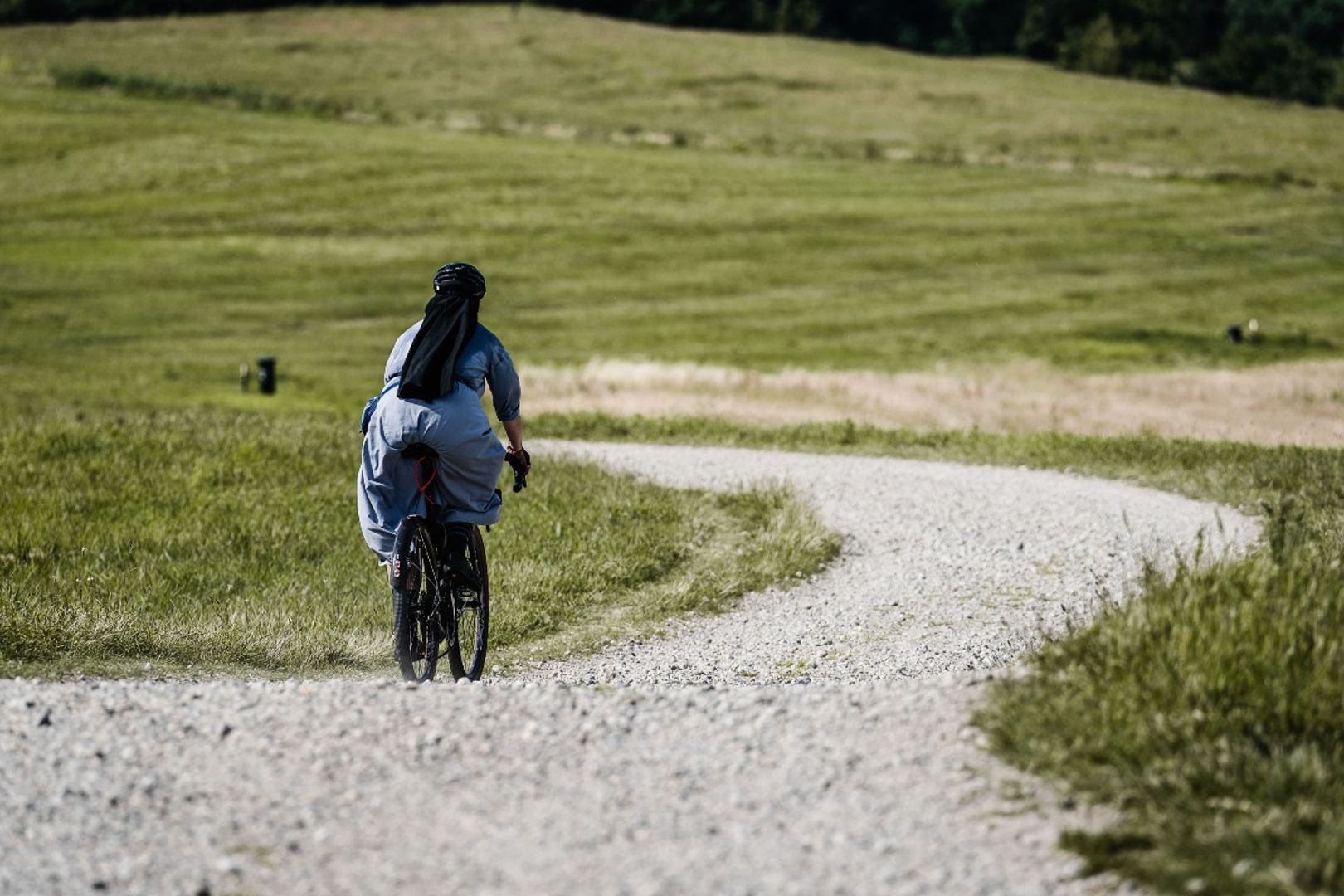 Op de fiets draag je ook je habijt: zit dat nooit vast tussen je ketting?