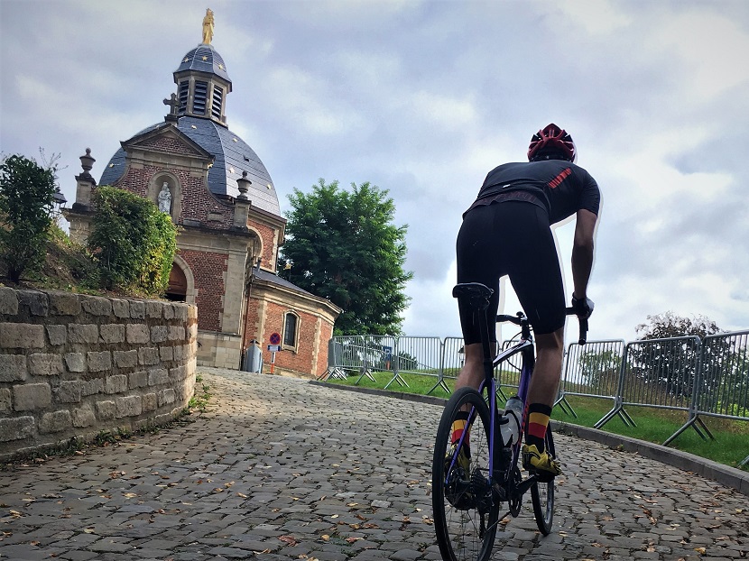 Als het bordje ‘Muur van Geraardsbergen’ naar rechts wijst, moet je pas echt diep in het rood. De hellingspercentages reiken tot aan de 20% en op de kasseitjes is het moeilijk tempo houden. Als je Taverne ’t Hemelrijck zit het zwaarste stuk erop. Je hebt hier net genoeg tijd om je op te laden voor de laatste 50 meter naar de eenzame kapel die uitkijkt op het centrum van Geraardsbergen. Geniet van het prachtige uitzicht!