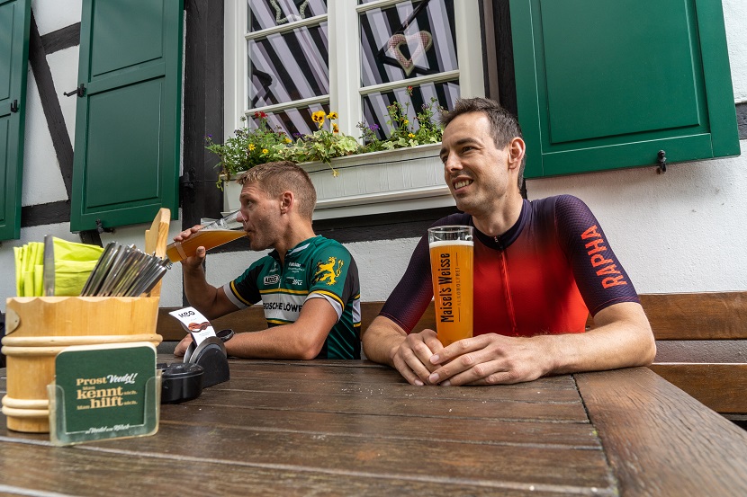 Tobias Kelter, oud-amateurwielrenner en werkzaam bij het VVV, is onze tweede gids. De wielerregio is minder bekend dan de Eifel en het Sauerland, maar op krap anderhalf uur van de grens bij Venlo net zo goed bereikbaar. De heuvels halen er een hoogte van circa 400 meter en de beklimmingen een lengte tot zo'n 3 km. De hellingen zijn veelal lopers, wat de streek aantrekkelijk maakt voor zowel de rasklimmer als hardrijder die een paar kilootjes extra omhoog moet slepen. Niet voor niets werd Rund um Köln meermaals gewonnen door sprinters die ook een aardig eindje kunnen klimmen, zoals Michael Matthews, Sam Bennett en Dylan Groenewegen.