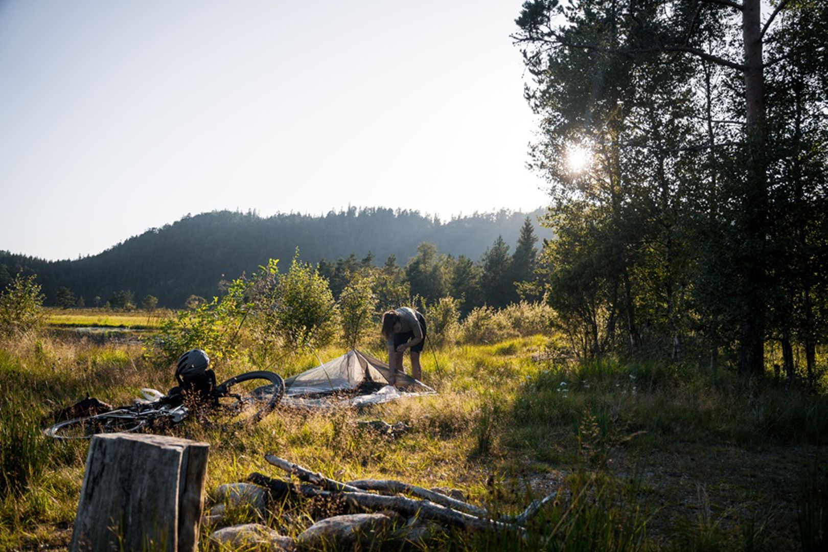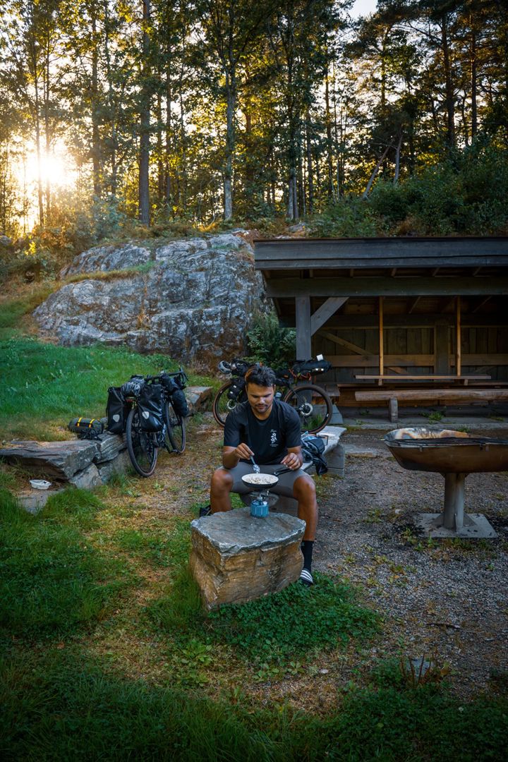 Die toegankelijkheid wordt versterkt door het allemansrecht: het recht dat iedereen vrij is om in de natuur te zijn en te wildkamperen. Klinkt fantastisch, maar toch weet je nooit wat je kunt verwachten. Als we aankomen bij de eerste slaapspot, twijfelen we toch. Het is een mooi onderhouden bos en in de verte horen we de geluiden van de bewoonde wereld. Hier slapen voelt toch brutaal. Een wandelaar ziet onze twijfel. “Jullie kunnen hier gewoon slapen hoor. Fantastische plek!”, roept hij ons toe. Bijna verbaasd door die vanzelfsprekende vriendelijkheid, zetten we ons tentje op. Terwijl de avondmaaltijd pruttelt, weten we: dat wildkamperen komt wel goed.