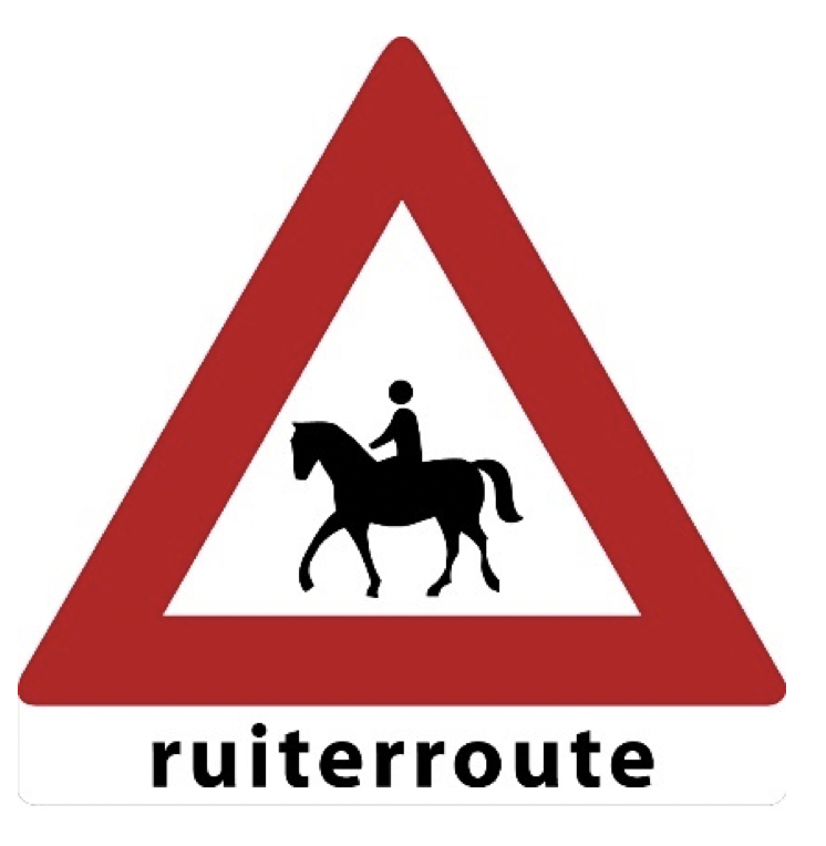Dit bord waarschuwt je als je een ruiterroute kruist. Snelheid minderen en goed kijken dus. We geven je in dit artikel tips om een ruiter veilig te passeren.
