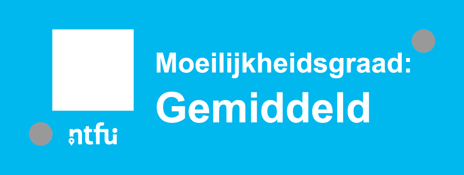 Langs steeds meer routes zie je ook kleurcode-bordjes hangen. Dit rechthoekige bord hangt ónder de routepijl. Het geeft de moeilijkheidsgraad van de route aan: makkelijk (groen), gemiddeld (blauw), moeilijk (rood) of zeer moeilijk (zwart).