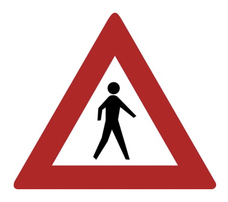 Je bent niet alleen in het bos. Kom je wandelaars tegen, dan wordt je daar voor gewaarschuwd met dit bord. Je snelheid aanpassen is hier extra belangrijk. Als je wandelt, ervaar je de snelheid heel anders dan dat je ingehaald wordt als je fietst.