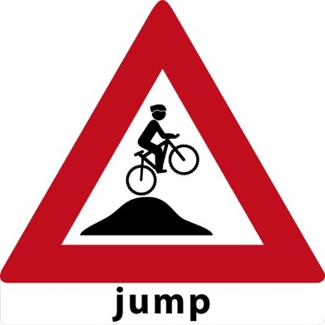 Dit bord waarschuwt je voor een (hoge) sprong.