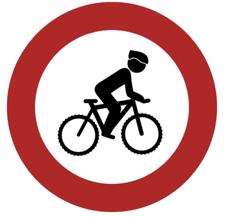 Kom je onderstaand bord tegen, dan is het niet toegestaan voor mountainbikers om verder te fietsen.