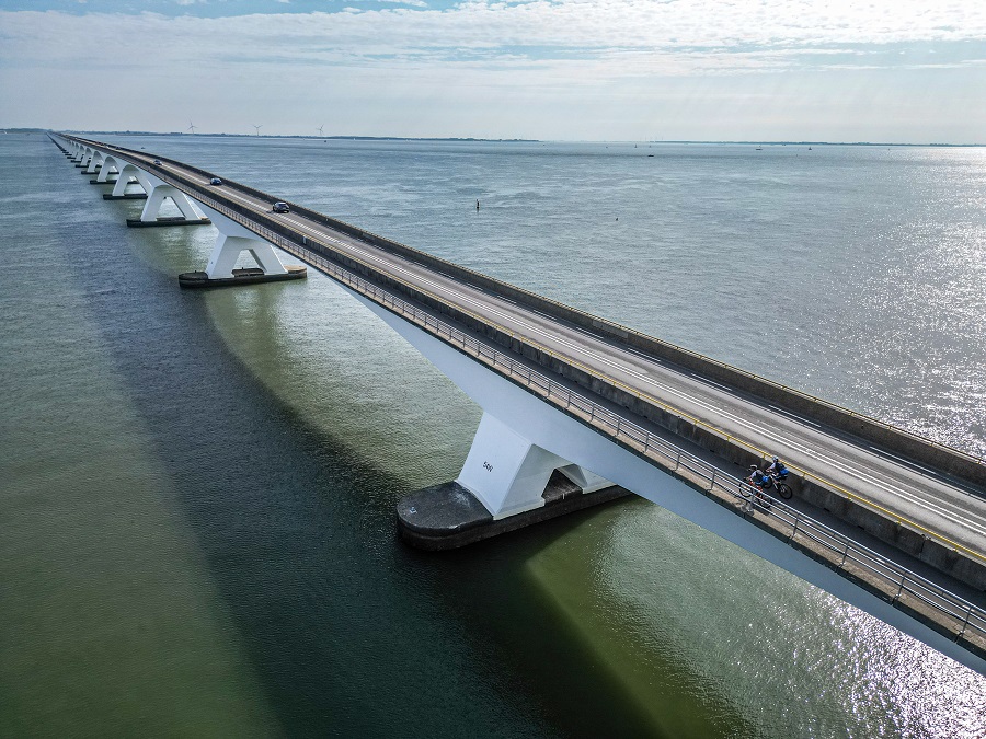 De wind speelt samen met het water een cruciale rol in deze provincie. Zeeland staat bekend om zijn Deltawerken, maar nog voor de Oosterscheldekering werd gebouwd, moest er een goede noord-zuidverbinding komen omdat de lokale pontjes de groeiende verkeersdrukte niet meer aankonden. Al na een paar kilometer doemt deze indrukwekkende verbinding op: de ruim vijf kilometer lange Zeelandbrug.