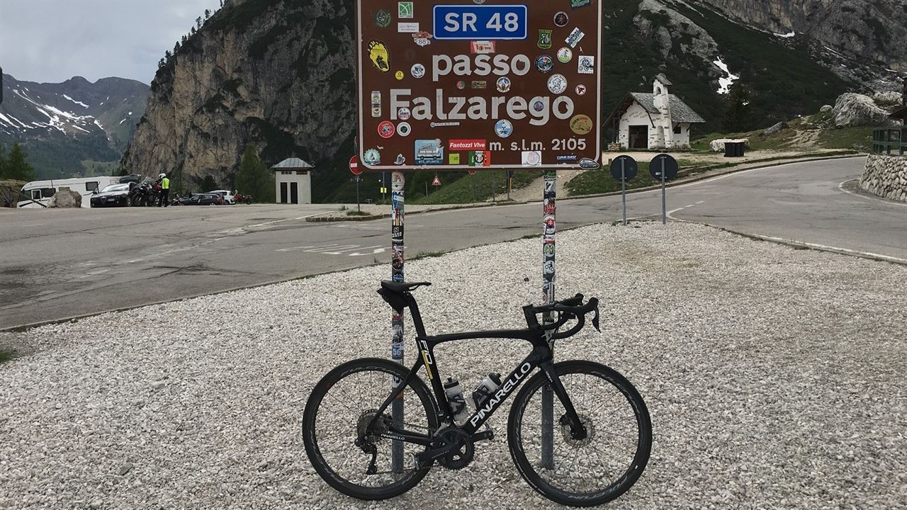 Te midden van een internationaal gezelschap van fietsjournalisten kom ik vroeg in de avond in Treviso aan, de thuisbasis van Pinarello. De fabriek is al gesloten, waardoor een rondleiding er helaas bij inschiet. De Dogma F10’s, die voor ons klaar staan in de naastgelegen nieuw geopende shop, maken echter een hoop goed. Fausto Pinarello, zoon van oprichter Giovanni, komt ons nog even welkom heten. Op de motorscooter, dat dan weer wel. We nemen afscheid en rijden met een volgeladen taxibusje de bergen in.