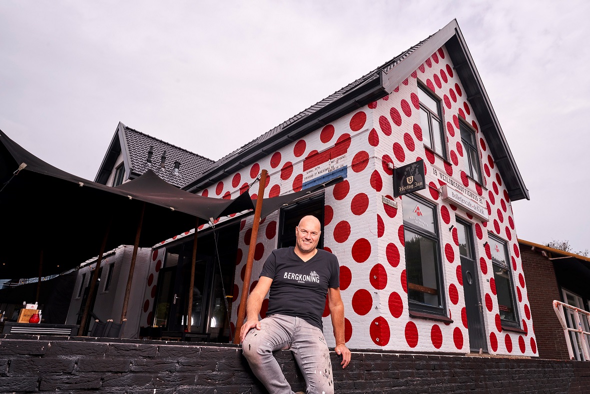 Pronk besloot de afspraak na te komen en liet het pand in de kleuren van de bergtrui schilderen. Als je het pand binnenloopt, vind je hier gek genoeg niets dat doet denken aan de successen van Steven Rooks. Ook geen foto’s of ingelijste wielrenshirts aan de muur. Huidige eigenaar Ronald Dekker: “Vind je het van de buitenkant niet genoeg dan?”, vraagt hij mij met een glimlach.